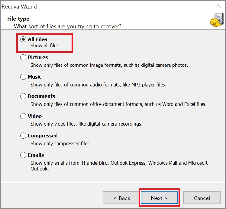 삭제한 파일의 종류를 선택하면 되는데 저는 모두 찾기를 체크하고 다음으로 넘어갔습니다.