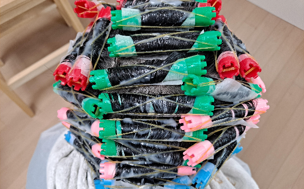 ④ 제일 중요한 롯트 마는 방법은 사진으로 보는 것보다 유튜브 영상으로 보는 게 확실합니다. 영상 보고 롯트에 고무줄 끼우는 거 100번만 연습하고 시작하면 시간 반으로 줄어듭니다.