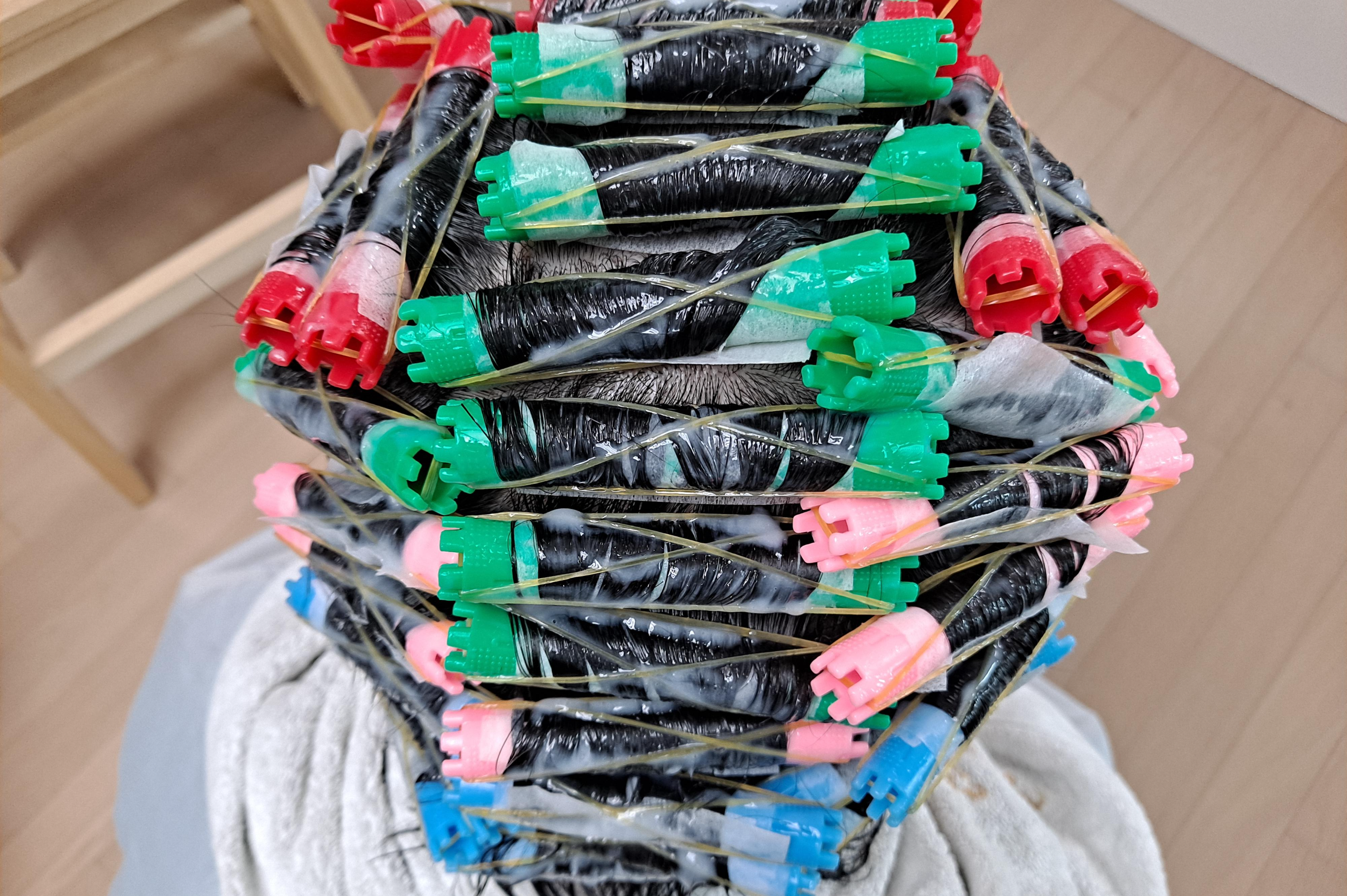 파마를 해줄 사람이 꼭 있어하는데 주변에 손재주가 있고 인내심이 강한 사람으로 섭외해야 합니다. 혼자 해보려고 검색했다가 이 글을 보았다면 포기하십시오. 팔 아파서 병원비가 더 들 수도 있습니다.