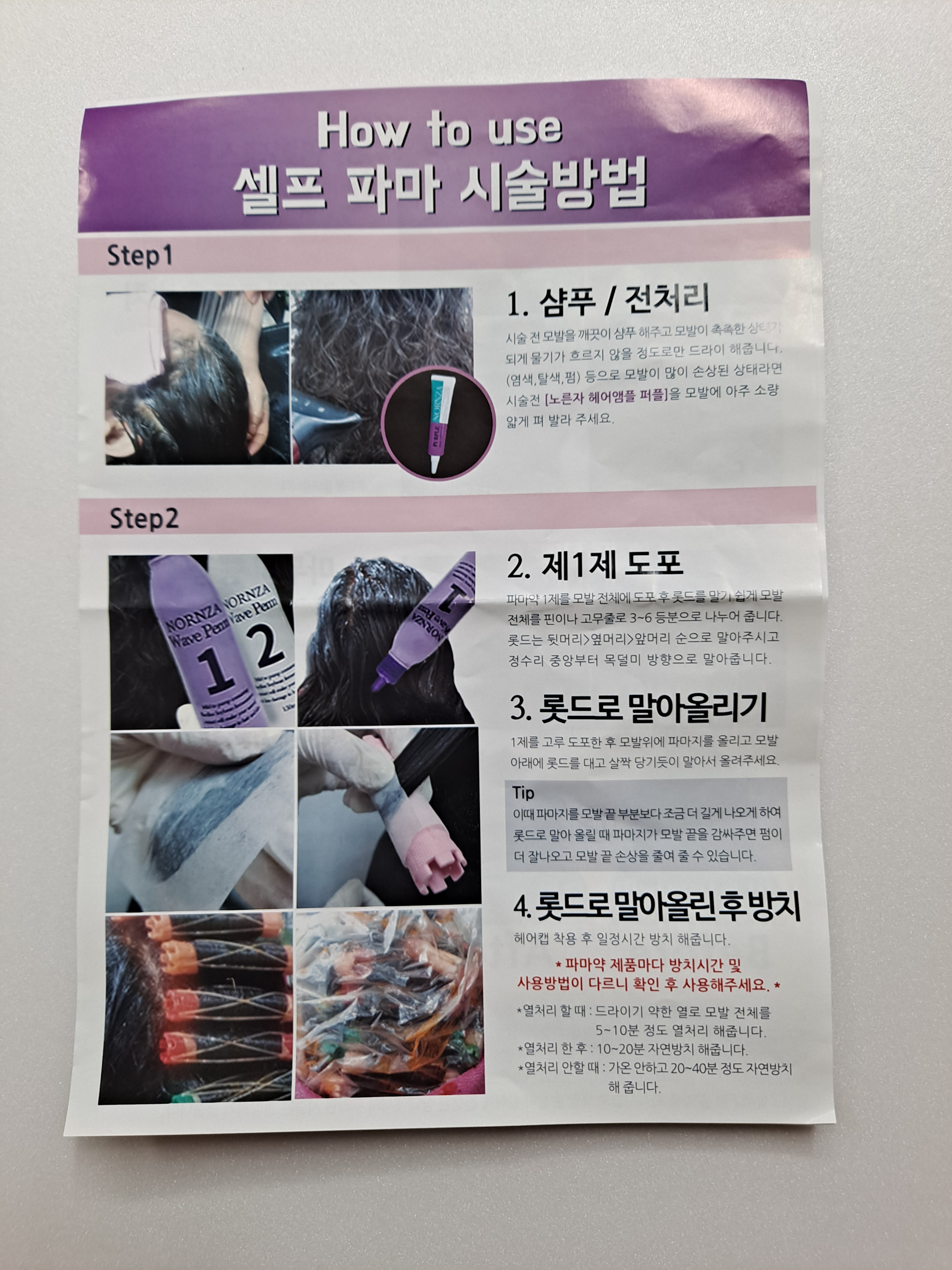 파마를 해줄 사람이 꼭 있어하는데 주변에 손재주가 있고 인내심이 강한 사람으로 섭외해야 합니다. 혼자 해보려고 검색했다가 이 글을 보았다면 포기하십시오. 팔 아파서 병원비가 더 들 수도 있습니다.